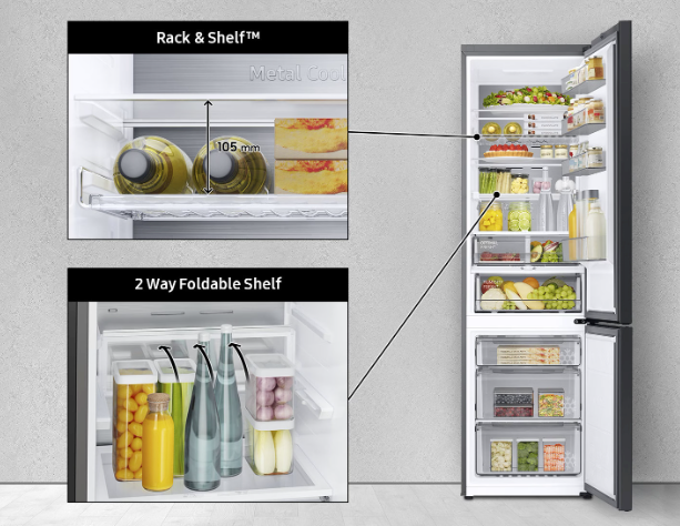 Κωδ. : Samsung Ψυγειοκαταψύκτης 390lt NoFrost Υ203xΠ59.5xΒ65.8εκ. Inox RB38C7B6CS9/EF