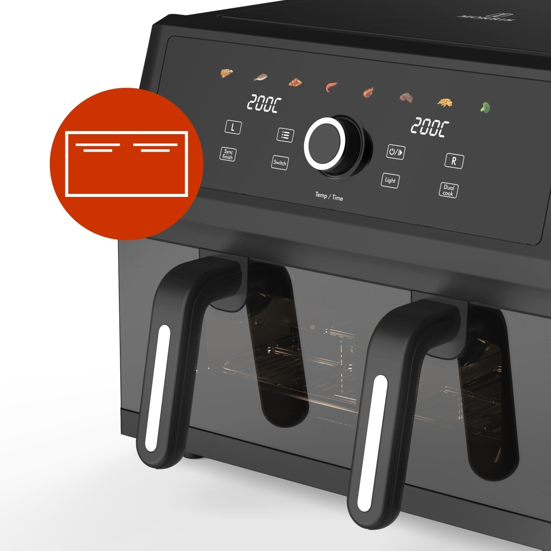 Κωδ. : Morris Air Fryer με Διπλό Αποσπώμενο Κάδο 10.4lt Μαύρο MAF-1106C